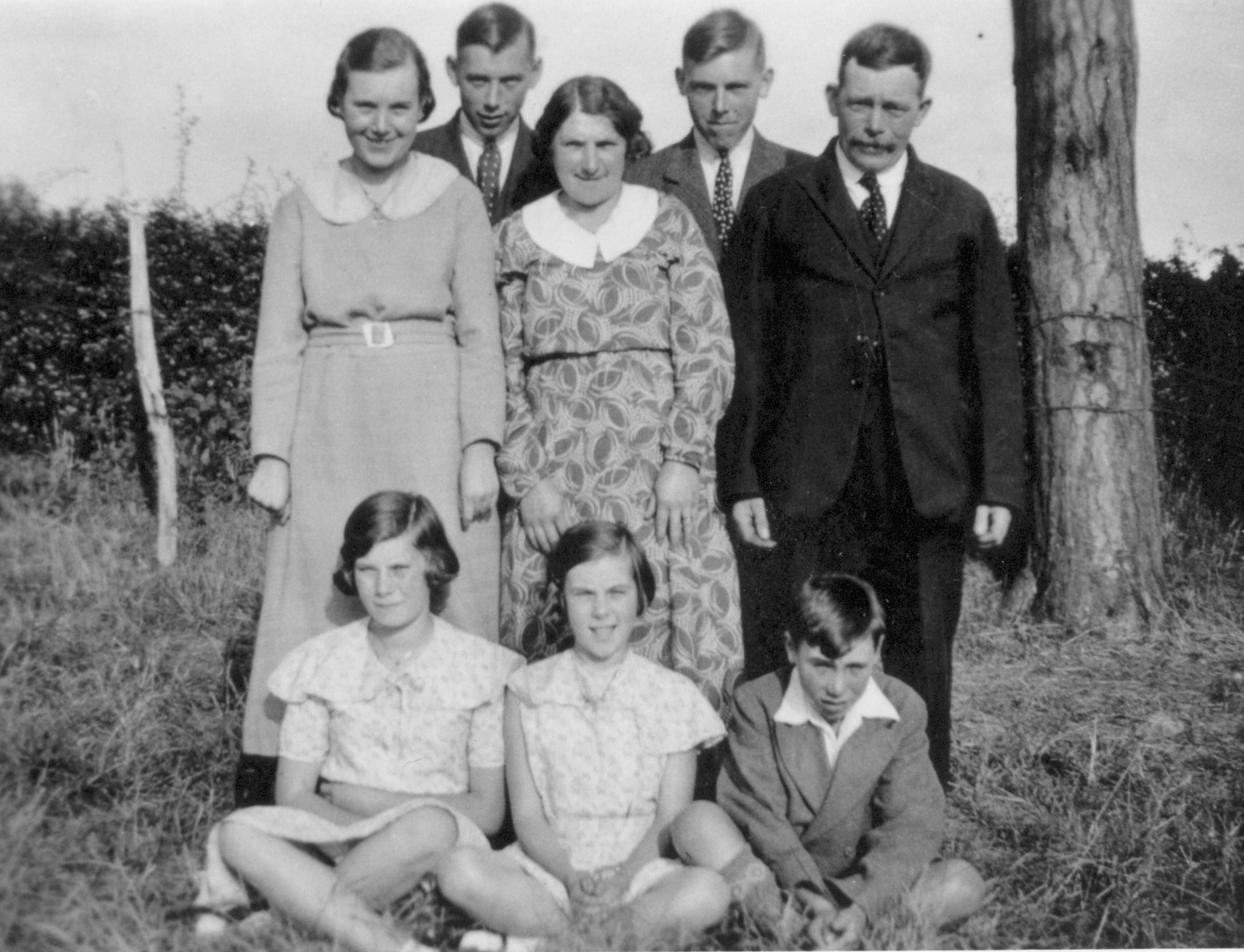 1930's? The Duggan Family (click for larger image) stood, from left: Marjorie, Frederick, Edith, Reg, William seated: Doris, Eileen, Roly |